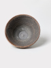 Für Iris verwendeten wir Shino sowie lokalen wilden Lehmton, der als Schlicker aufgetragen wurde. Bei sehr hohen Temperaturen schmilzt dieser besondere Ton schwarz aus und entwickelt blau-weiße Kaskaden, die sich mit dem Shino vermischten und im Inneren der Schale einen Augapfel erzeugten./ For Iris, we used Shino along with local wild clay applied as a slip. At very high temperatures, this particular clay melts into a deep black and develops blue-white cascades that mingled with the Shino, creating an eyeball effect inside the bowl.