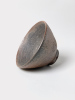Diese wilde Porzellanerde haben wir in Ostdeutschland gefunden. Sie entwickelt hier einen wunderschönen Grauton mit zarten Übergängen ins Apricotfarbene mit schwarzen Einschlüssen. Die angeflogene Holzasche des Brandes bildet eine transparente, orangeartige Glasur. An einer Seite findet sich ein fellartiger Fleck aus ungeschmolzener Asche. / We found this wild kaolin in East Germany. Here, it develops a beautiful grey tone with delicate transitions into apricot and features black inclusions. The fly ash from the firing forms a transparent, orange-toned glaze. On one side, there is a fur-like patch of unmelted ash.